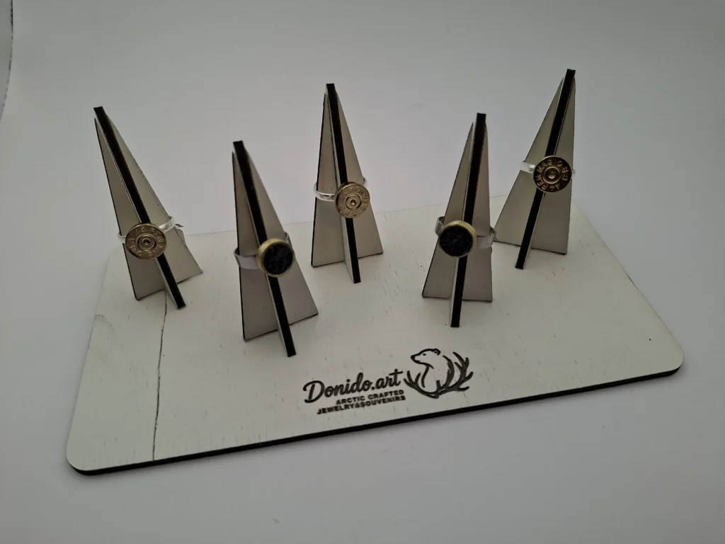 Every material we use has a story. Reindeer antlers shed naturally on Arctic tundra. Coal that’s 50 million years old. Spent cartridges from bear protection practice. Driftwood, resin, soy wax. Nothing is wasted – everything becomes something worth keeping.